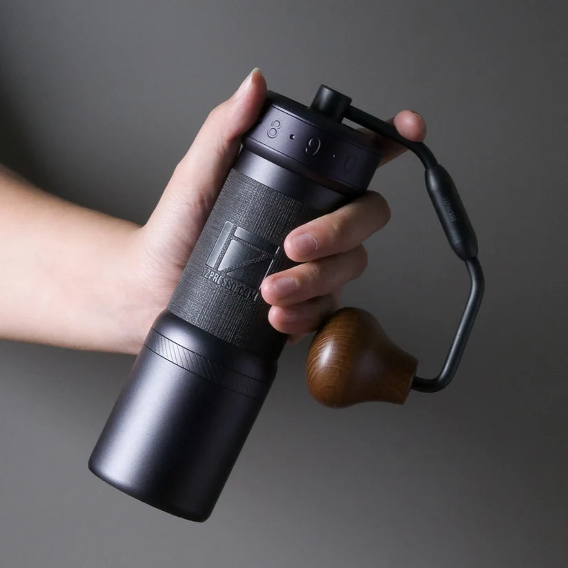 An upgraded version of K-Max with a foldable handle and a different design. The finer adjustment mechanism lets you dial into the preferred grind size for all brewing methods more easily.
