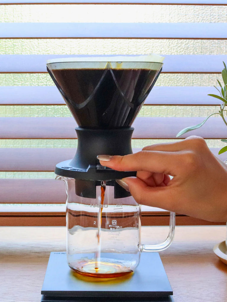 The Hario V60 Mugen Switch allows you to brew exceptional coffee with unprecedented control. This innovative brewer gives you the ability to switch between regular pourover and immersion brewing methods mid-brew, allowing you to highlight different aspects of your coffee and achieve your desired extraction level.