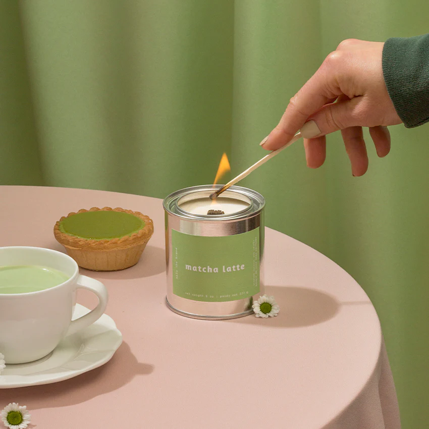 Introducing Mala The Brand's Matcha Latte Candle. Nothing says 'good morning' like this invigorating blend of green tea, creamy vanilla, and chamomile. with undertones of jasmine and musk, this cozy and familiar scent will keep you going from sun up till sun down.