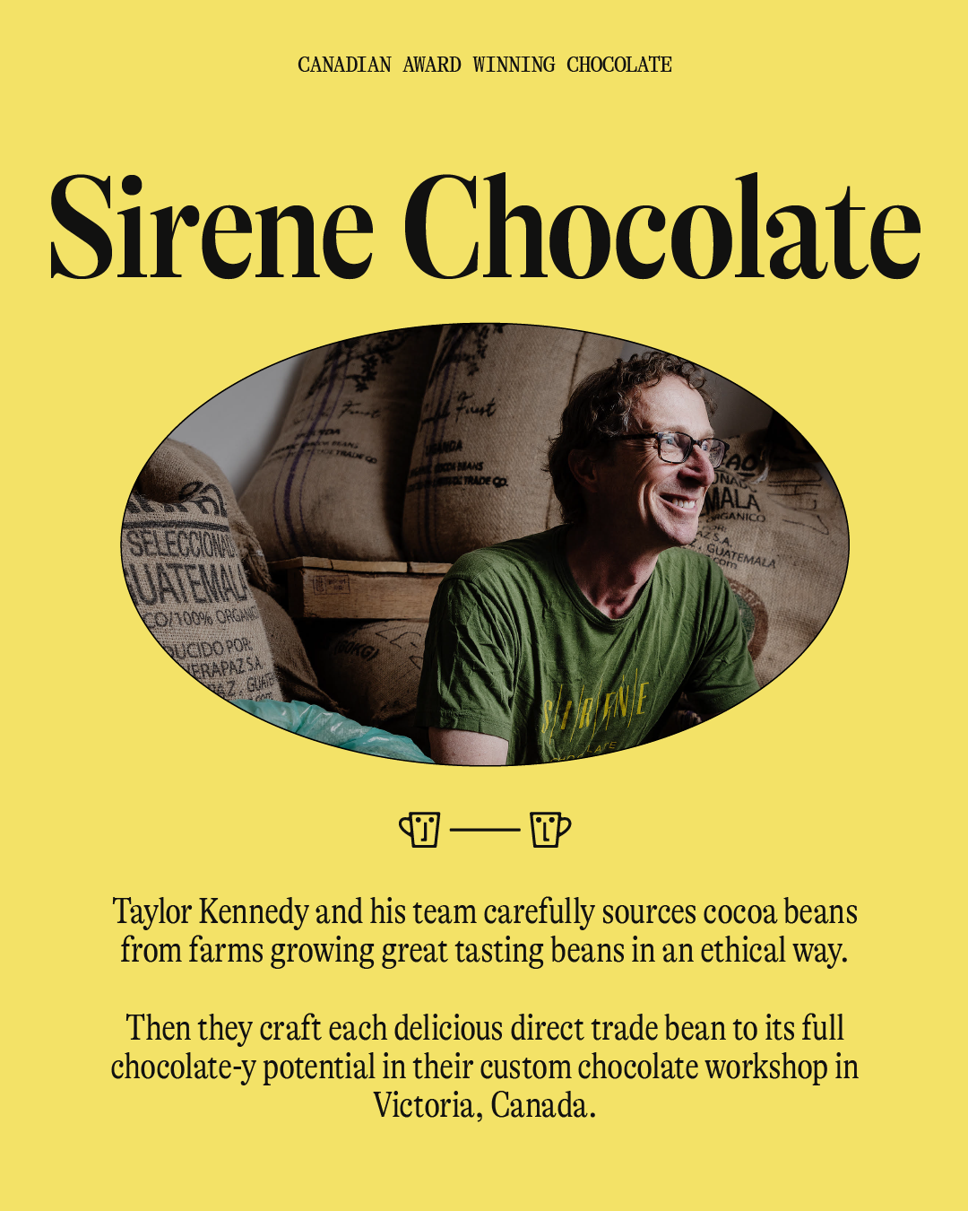 Meet Sirene Chocolate's Winter Warmer chocolate bar. You can almost feel the warm Tanzanian sun caress your face as you savour this bar. This is a dark milk made with Kokoa Kamili's delicious cocoa beans and a little nutmeg and clove added to help you warm up during the winter cool.