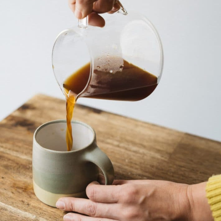 This heat resistant glass server from Japan's KINTO rounds out the SLOW COFFEE STYLE lineup to bring you just what you need... coffee. Relax with the restorative, and maybe even a little meditative, process of brewing a pourover coffee. That's what SLOW COFFEE STYLE is all about. The calming neutral colours and the beauty of the glass are reminders that slowing down to savour a cup of coffee can make all the difference in a day. Using the best materials and craftsmanship, SPECIALTY is unique designs that blend form and function to create a little magic in your coffee brewing. Oh yeah, this carafe, decanter, or whatever you prefer to call it, can also be used for just about any liquid, hot or cold. So if you prefer tea, you do you.