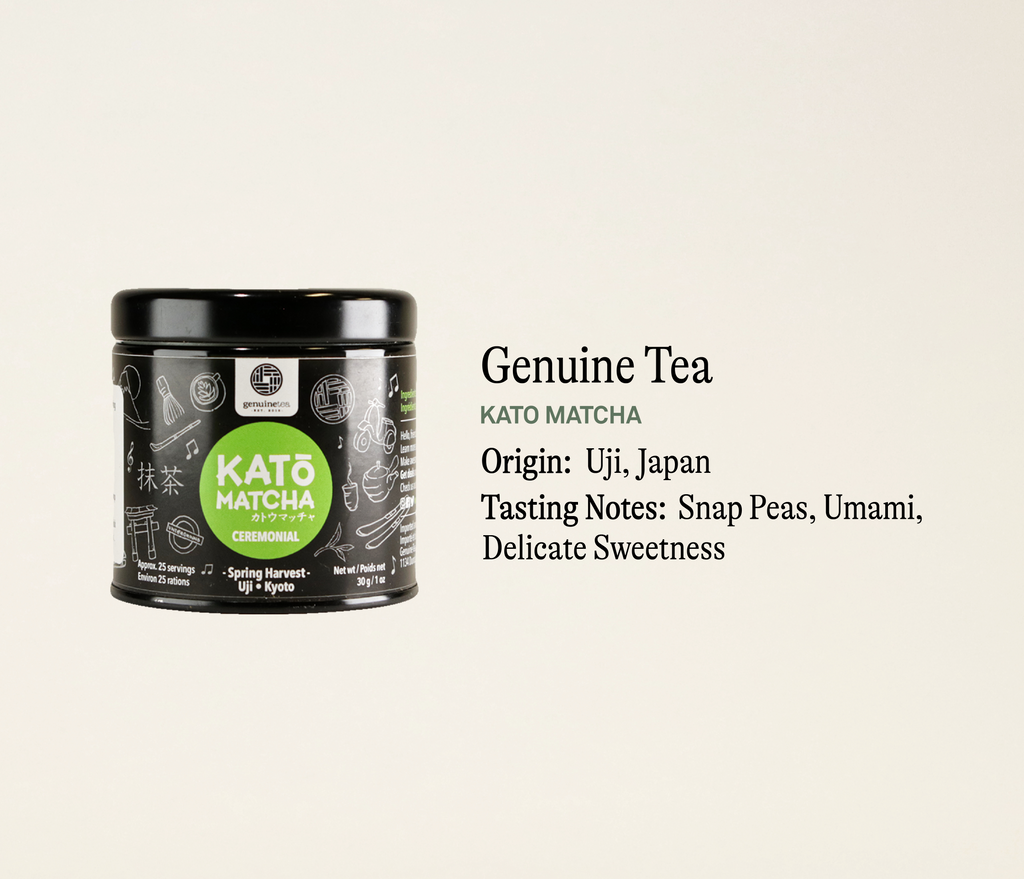 - Genuine Tea - Kato Matcha Spring Harvest (30g): Meet Kato Matcha, a ceremonial grade matcha green tea powder straight from the Katō Family in Uji, Kyoto to your cup. This is a perfectly smooth, ceremonial grade matcha powder (spring harvest) from the finest matcha growing region in Japan. Subtle and sweet. The Spring Harvest is regarded as the highest quality with very little astringency. It has a strong umami flavour with a delicate sweetness. 20-25 servings.