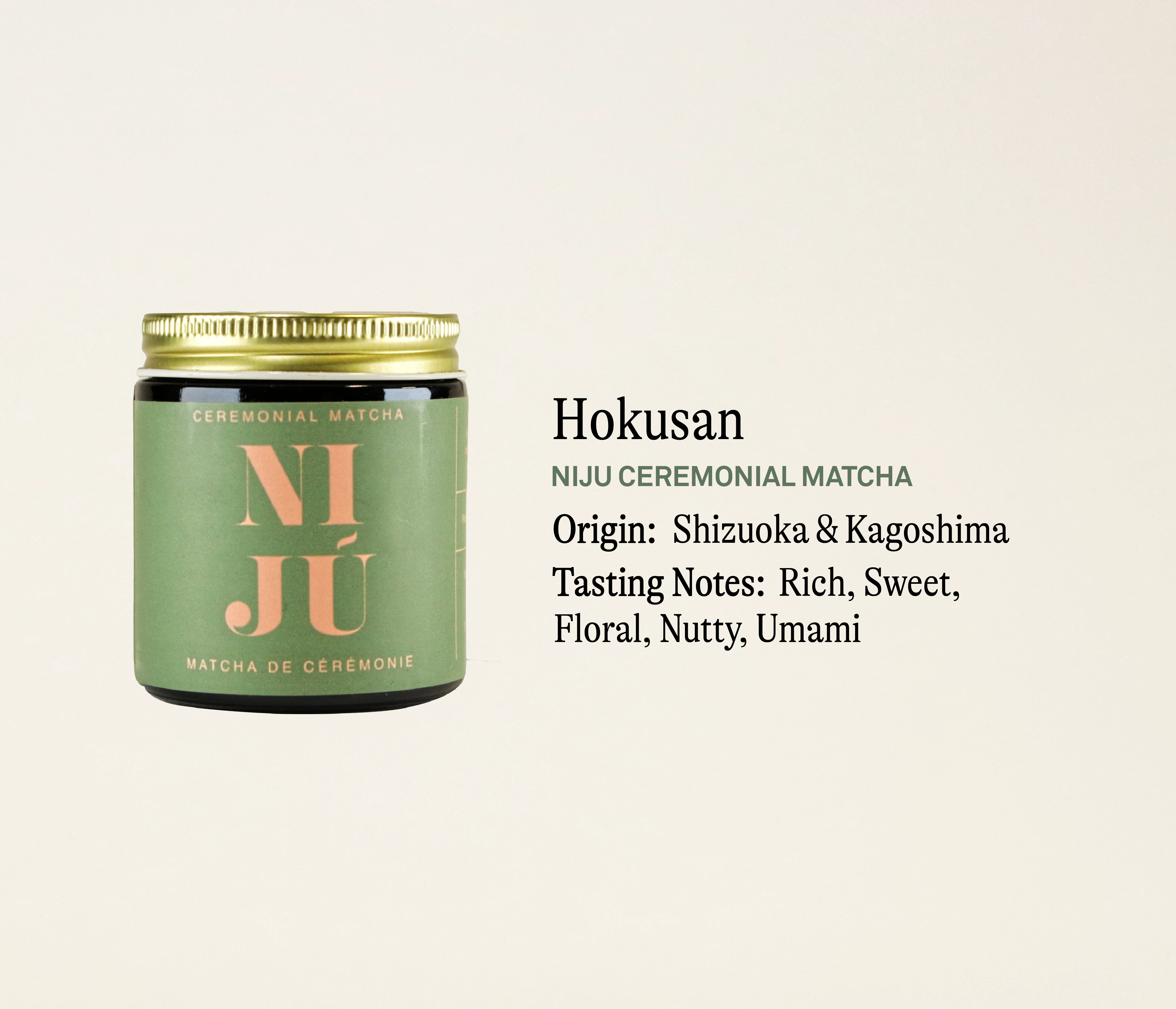 - Hokusan - Niju Ceremonial Matcha (40g): Meet Niju, a ceremonial matcha from a blend of Shizuoka and Kagoshima, Japan. Perfect for that morning matcha latte or tea, you'll find sweet and floral forward characteristics, followed by a rich finish. 25-30 servings